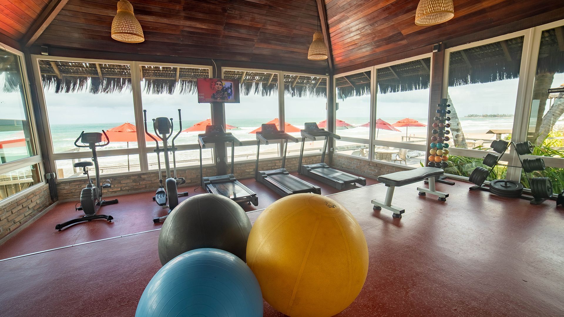Ubicado junto a la Piscina de la Playa, el gimnasio tiene una hermosa vista al mar. Está climatizado para garantizar tu comodidad y equipado con todo lo necesario para mantener tu rutina de entrenamiento. Su uso está incluido en la tarifa diaria, ¡así que siéntete libre!